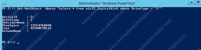 Windows Powershell ile bir çok yönetimsel işler yapılabilmektedir.Bunlardan bir diğer ise işletim sisteminde yüklü olan driverlar hakkında bilgi almaktır.Örneğin, aşağıdaki komut ile disk yapımız hakkında bilgi alabiliriz.