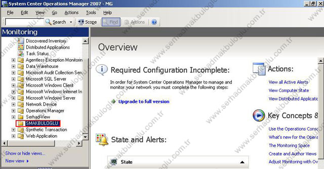 6)Oluşturduğumuz Management Packs ismi ile Monitoring bölümünde bir folder oluşturuldu.Bize özel olan bu yönetimsel paket ile alakalı bütün izlemeleri bu bölümden yapabiliriz.
