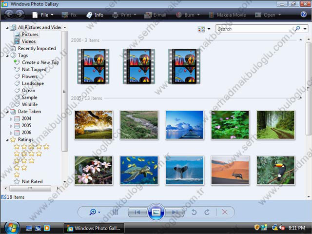 ●Windows Photo Gallery.Bu yeni uygulama ile digital makinalardan görüntü alabilir,düzenleyebilir ve slaytlar oluşturabiliriz.