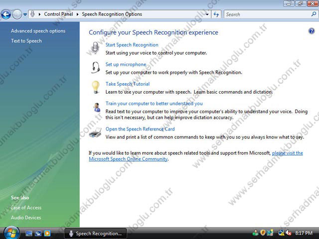 ●Text to Speech.Bu özellik sayesinde Vista’ya sesli olarak komut verebilmekteyiz.Bu uygulamanın Türkçe desteği yoktur.